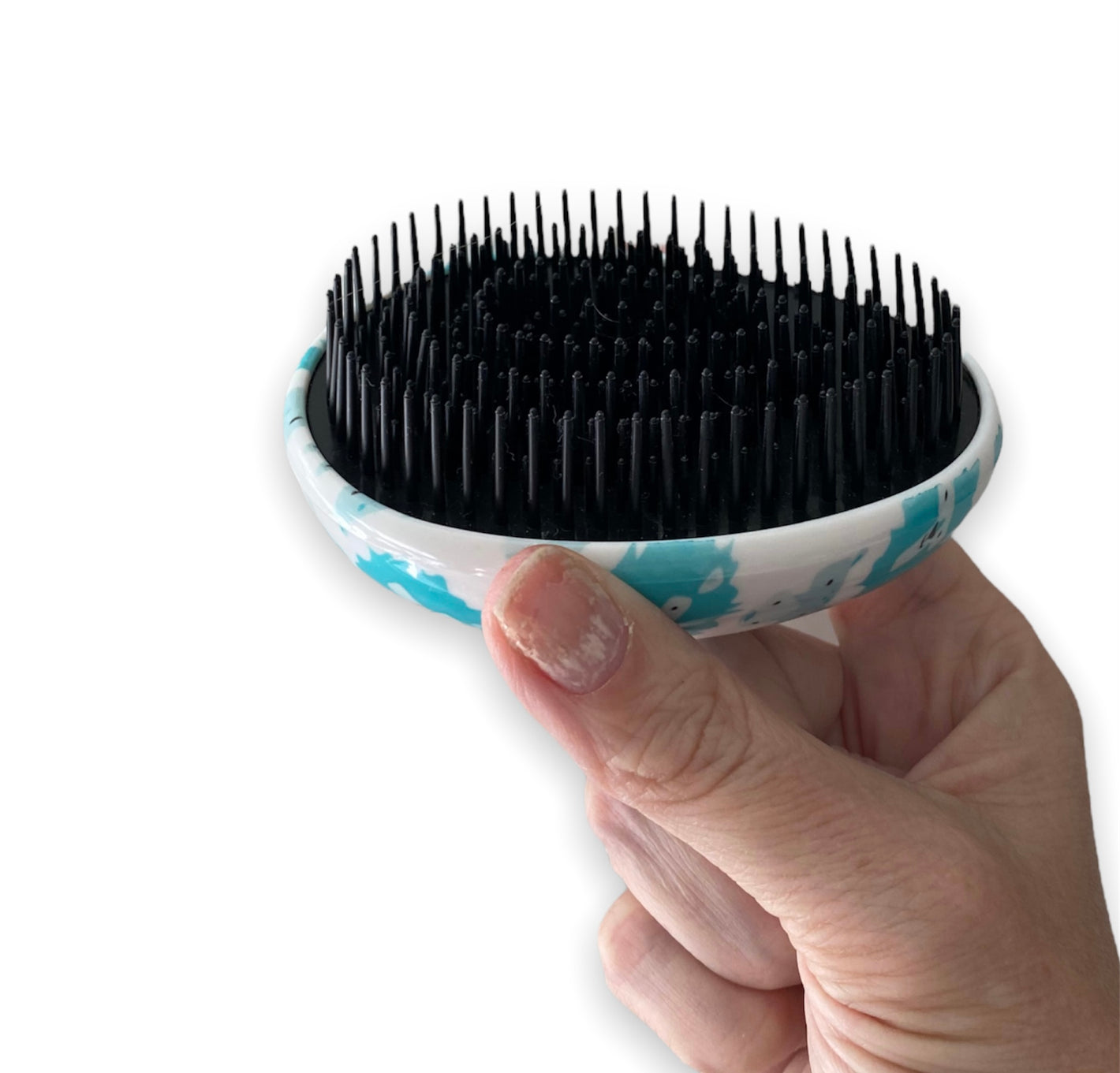 The importance of using a gentle detangling brush. T is for Tame tip: Always detangle when hair is damp and full of conditioner or cream to ensure we take care of their sensitive heads.